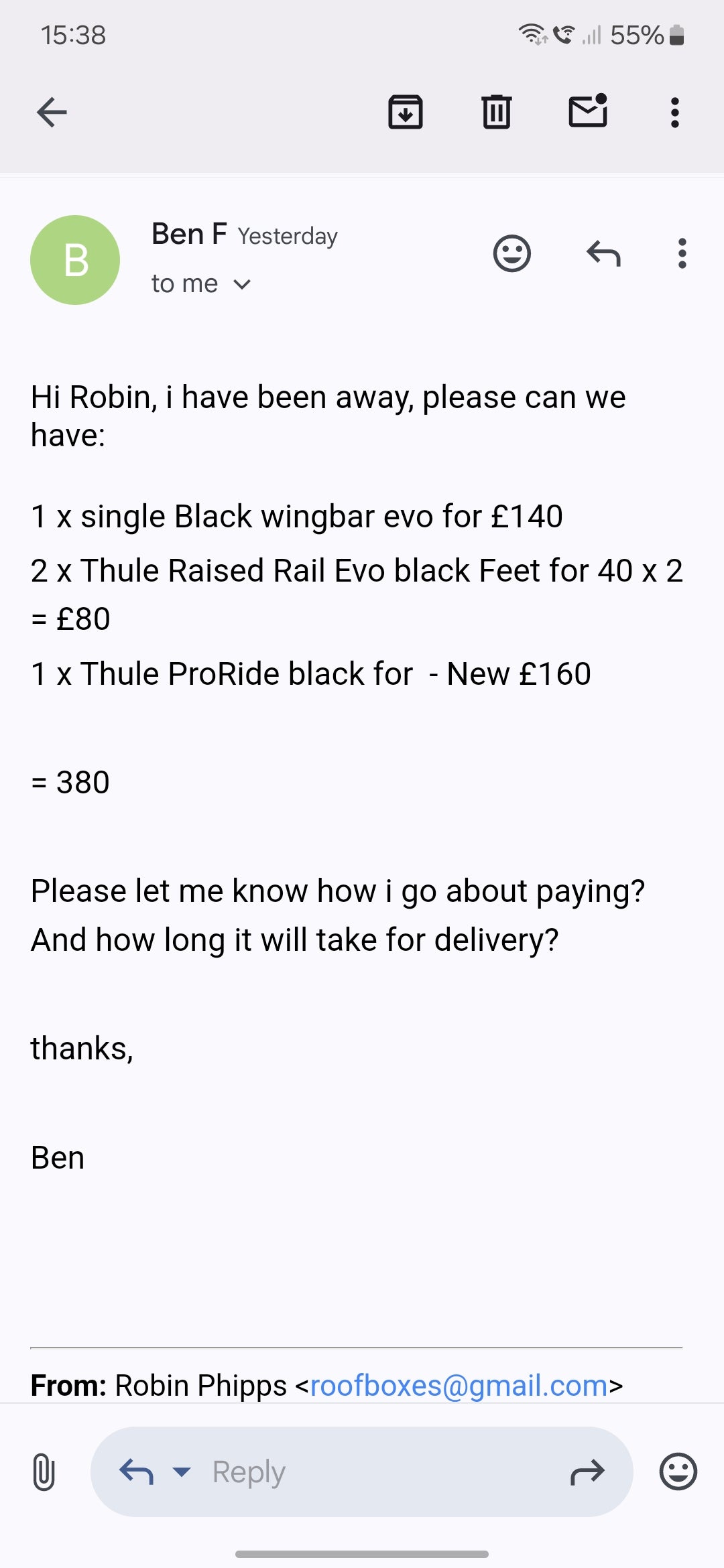 Custom order for Ben